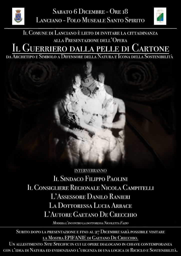 Sabato 6 dicembre dalle ore 18 il Polo Museale Santo Spirito di Lanciano, ospita un evento culturale di grande importanza. L’artista e fotografo frentano Gaetano De Crecchio presenta alla città la sua opera “Il Guerriero dalla pelle di Cartone”: da archetipo e simbolo a difensore della natura e icona della sostenibilità.