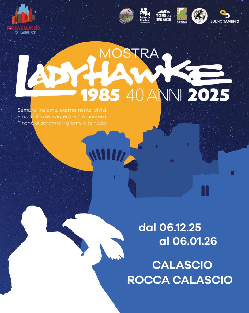 Calascio (AQ) celebra un anniversario speciale con la mostra dedicata ai 40 anni di Ladyhawke, il film di Richard Donner che ha reso Rocca Calascio uno dei luoghi cinematografici più iconici al mondo. Un’esposizione unica che riunisce costumi originali, materiali di produzione, documenti storici, fotografie e testimonianze del set che nel 1985 trasformò il borgo e la rocca in uno scenario leggendario.