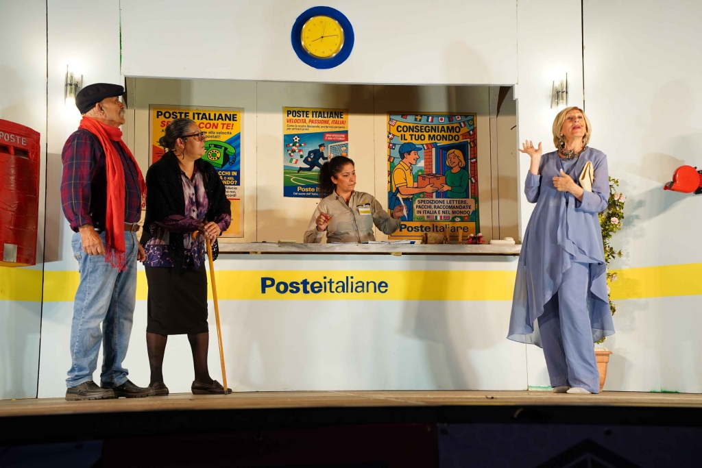 L’ufficio postale si trasforma in un teatro nel teatro, luogo di incontro, pettegolezzi e segreti, dove la realtà di paese si racconta con verve e autenticità.