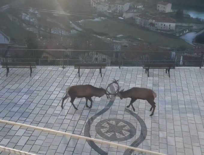 Ieri, martedì 14 gennaio, piazza Mammarino a Barrea, ridente centro dell’Abruzzo aquilano, nel cuore del Parco nazionale d’Abruzzo, Lazio e Molise è diventato inaspettatamente teatro di uno spettacolare scontro di due esemplari maschi di cervo.