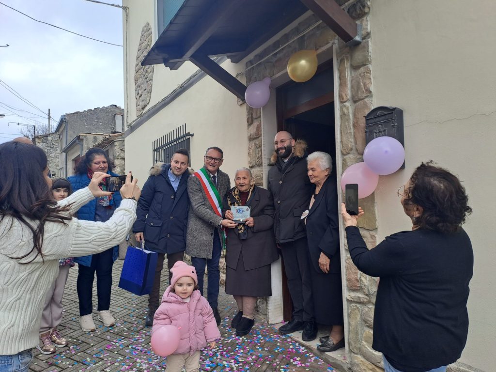 L’intero paese in festa per celebrare i 100 anni di Rina Pomilio. L’amministrazione comunale, insieme al parroco don Nicholas Di Crescenzo, al complesso bandistico e a molti abitanti del paese, hanno fatto visita alla signora Rina per brindare all’importante traguardo raggiunto.