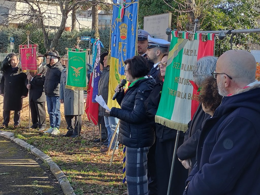 Dopo l‘omaggio al gonfalone della città di Lanciano e la deposizione della corona di alloro, sia la presidente della sezione frentana dell’Anpi Maria Saveria Borrelli, che il primo cittadino Filippo Paolini hanno offerto la propria riflessione sul celebrare una giornata così particolare.