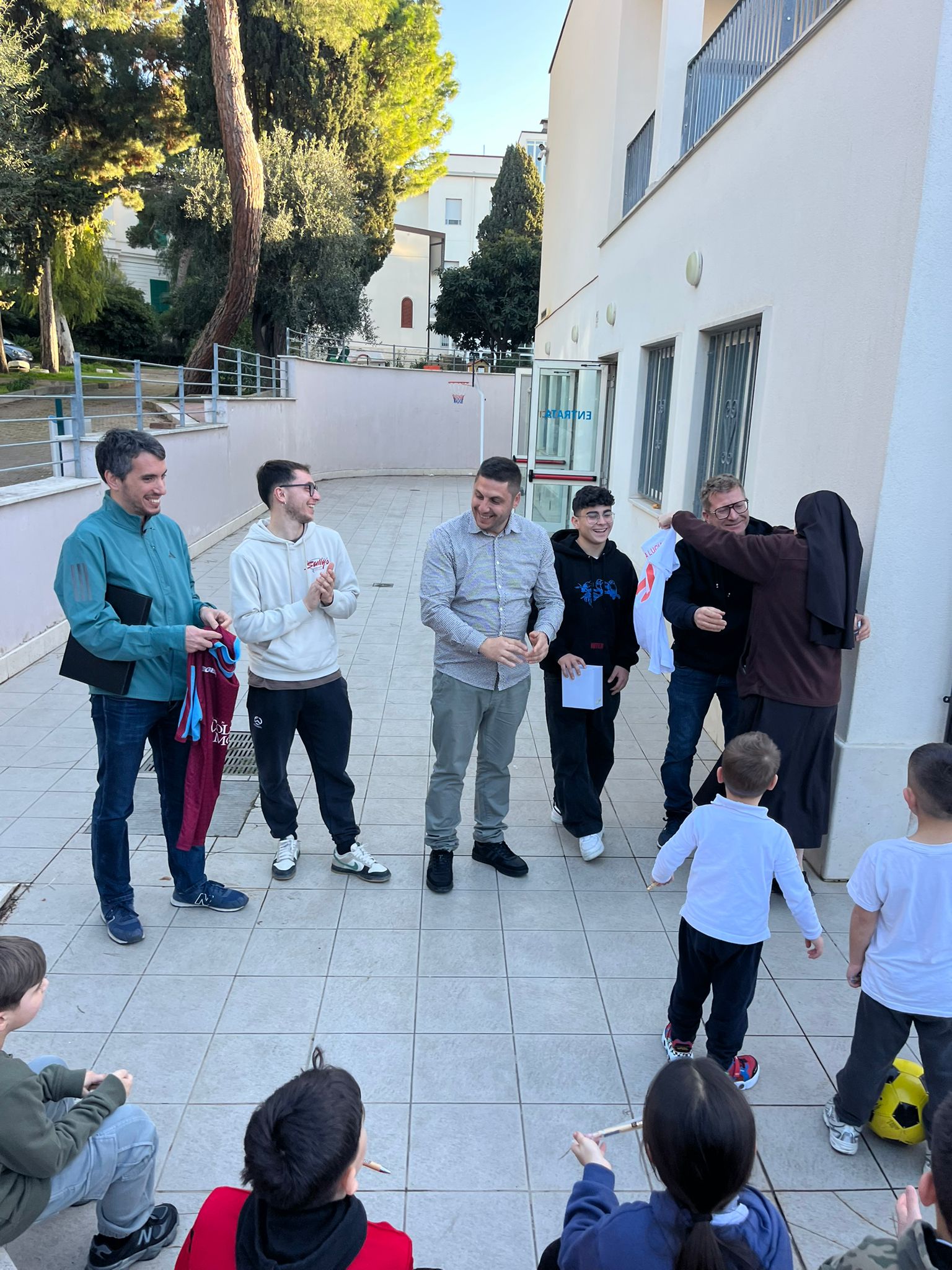 Ad accogliere la delegazione giallorossa le suore Figlie del Divino Zelo, insieme alle collaboratrici della struttura, con in prima linea suor Maria Lucia Colanero, compaesana di Guastameroli, che ha fatto da ponte umano e affettivo tra due comunità unite dallo stesso spirito di solidarietà.
