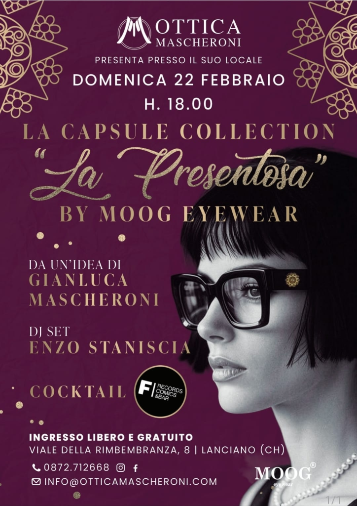C’è qualcosa di potente quando un’attività del territorio riesce a trasformare un simbolo identitario in un oggetto di design contemporaneo. È quello che accadrà domenica 22 febbraio, alle ore 18.00, da Ottica Mascheroni, punto di riferimento per l’eyewear di qualità a Lanciano, in occasione della presentazione della capsule collection femminile “La Presentosa” by Moog Eyewear.