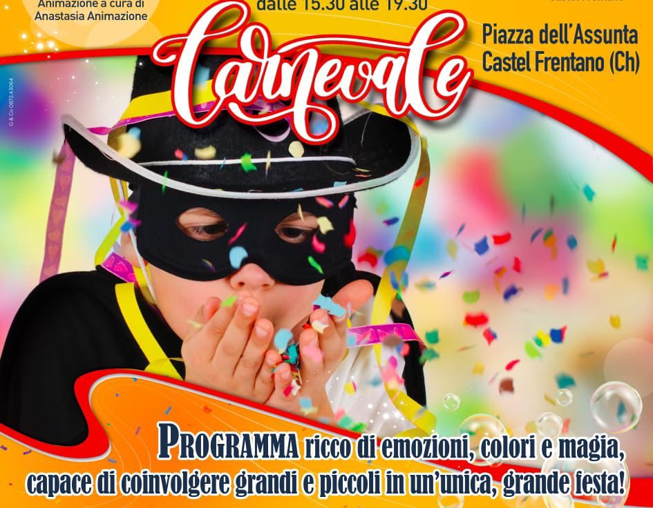 Martedì 17 febbraio dalle 15.30 appuntamento in piazza dell’Assunta con il Carnevale di Castel Frentano: un pomeriggio davvero indimenticabile, abbiamo pensato a un programma ricco di emozioni, colori e magia, capace di coinvolgere grandi e piccoli in un’unica, grande festa.