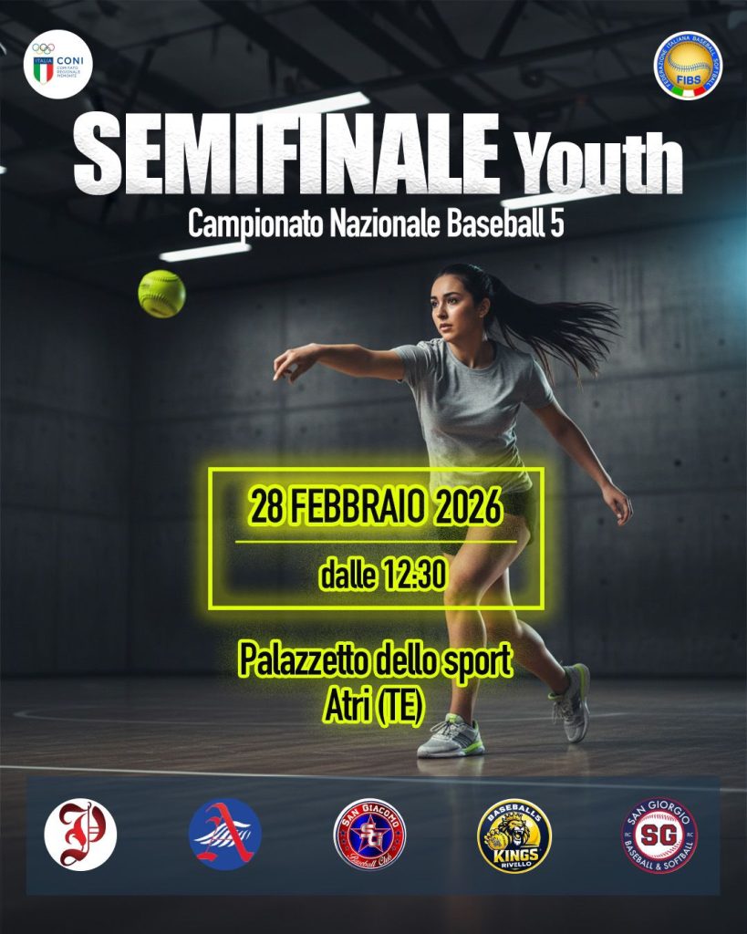 L’Abruzzo sarà di nuovo protagonista sabato 28 febbraio, dalle ore 12:30 con la Semifinale della categoria Youth Baseball5 – Palazzetto dello sport, Atri (Te).